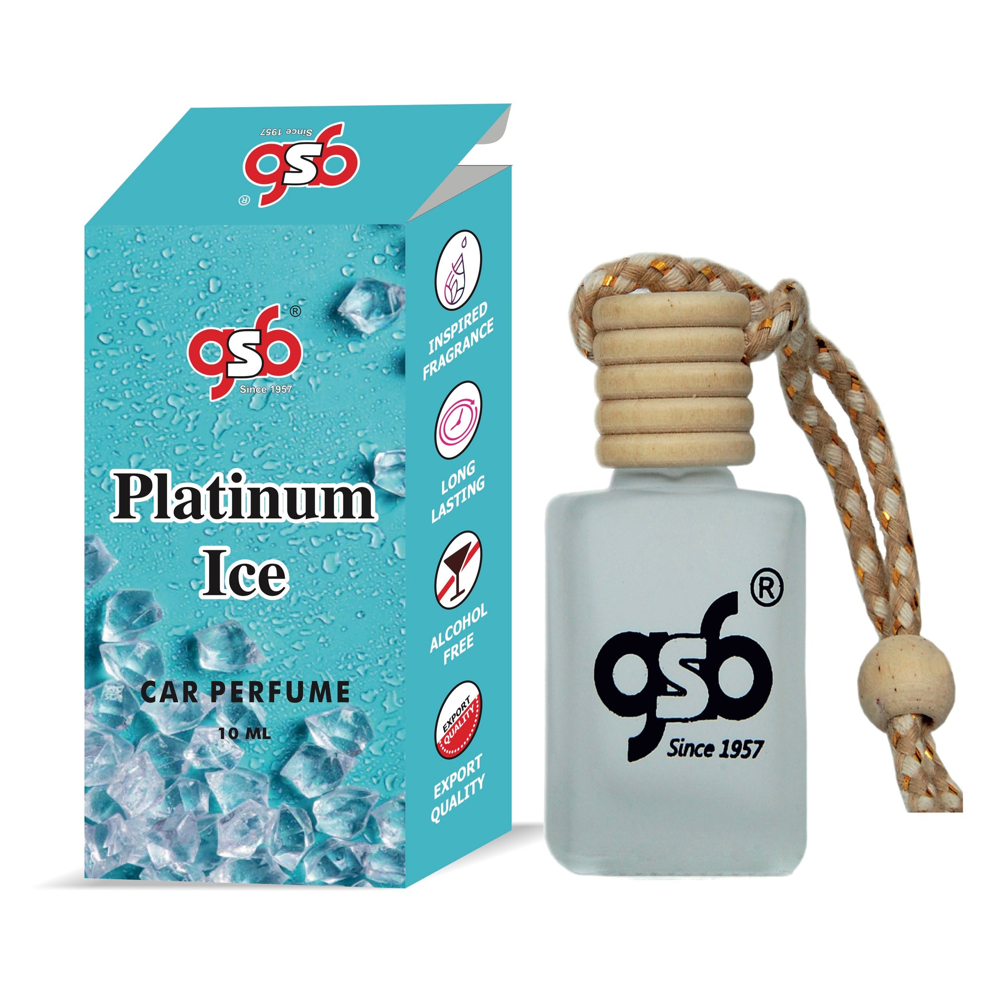 GSB Platinum Ice Hanging Car Air Freshener Inspired From Vitorcia Secret Platinum Ice | Natural Fragrance In Glass Bottle With Wooden Diffuser Lid | 10 Ml